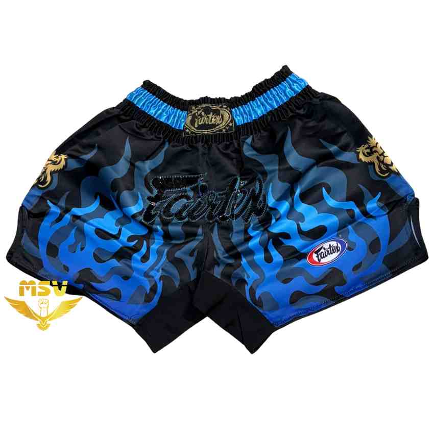 شلوارک رزمی فرتکس Fairtex طرح آتشین آبی، یک شلوارک حرفهای با پارچه ساتن خارجی، طراحی گلدوزی شده و آزادی کامل حرکت است. مناسب برای مویتای، کیکبوکسینگ و تمرینهای MMA. سبک، بادوام و با ظاهر خاص. در سایزهای M تا XXL عرضه میشود.