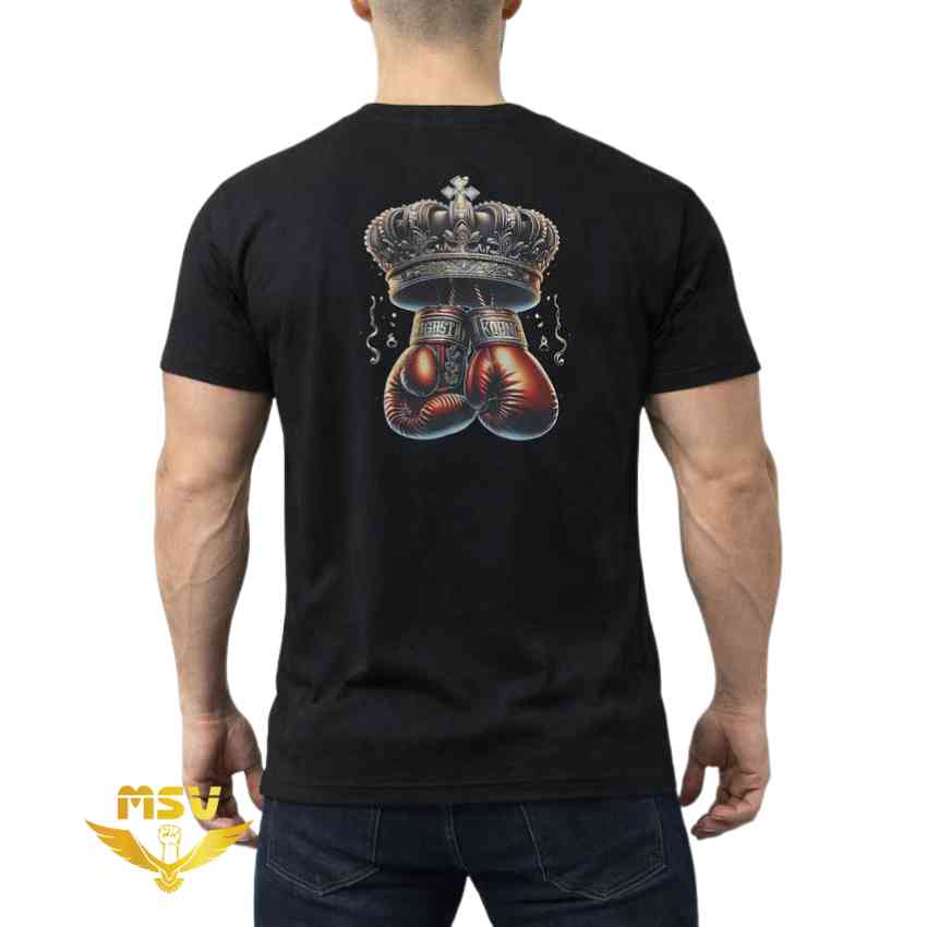 این تیشرت برای ورزشکاران رزمی و علاقهمندان به MMA، بوکس و دیگر ورزشهای رزمی طراحی شده است. طراحی جذاب آن، که شامل دستکشهای بوکس و تاج سلطنتی میباشد، علاوه بر انتقال حس قدرت و استقامت، به شما این امکان را میدهد که از آن در استایلهای خیابانی یا کژوال نیز استفاده کنید.