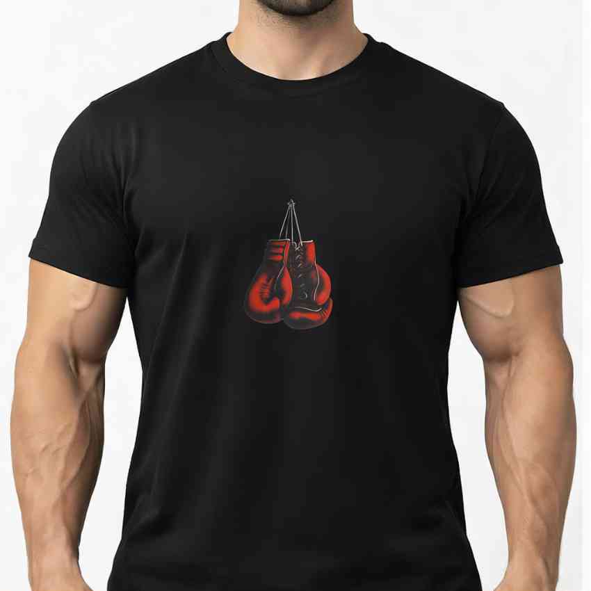 تیشرت رزمی بیسیک سوپر نخ پنبه مشکی چاپ پشت و رو دستکش بوکس قرمز مناسب است برای: