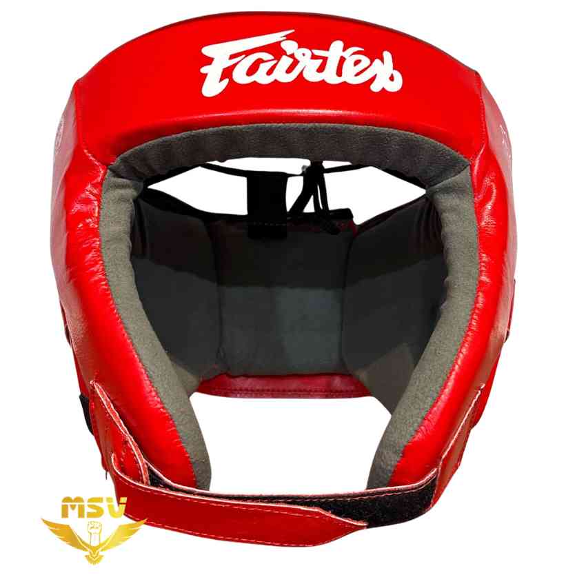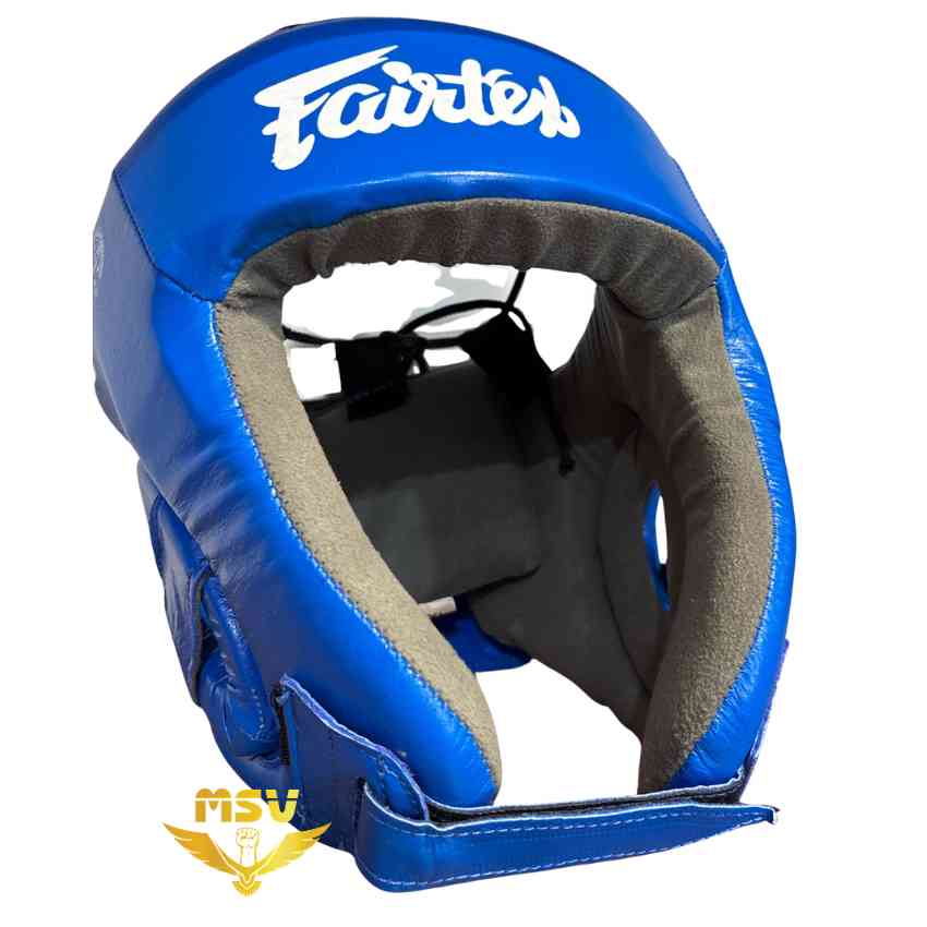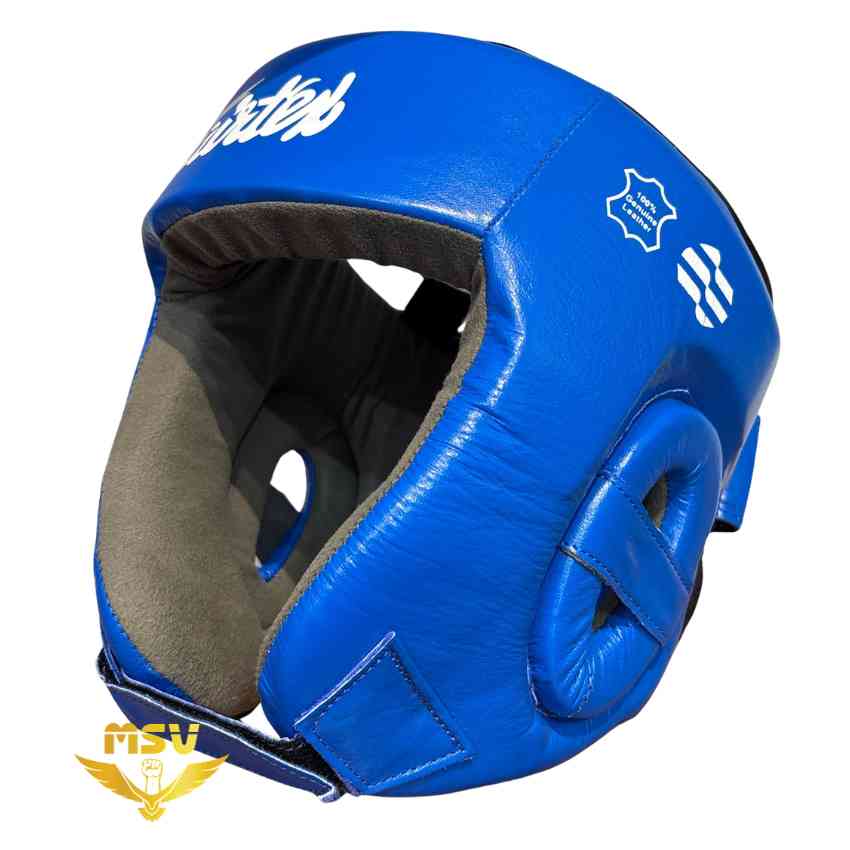 کلاه بوکس، کیک بوکس و موی تای و ووشو چرم طبیعی فرتکس Fairtex یک کلاه محافظ بدون فک با چرم طبیعی، آستر مخمل حولهای، دو چسب مقاوم پشت، بند تنظیم بالا و چسب زیر گونه است. این مدل در دو رنگ آبی و قرمز و بهصورت فری سایز عرضه میشود و پوشش کامل پیشانی و کنارههای صورت را فراهم میکند.
